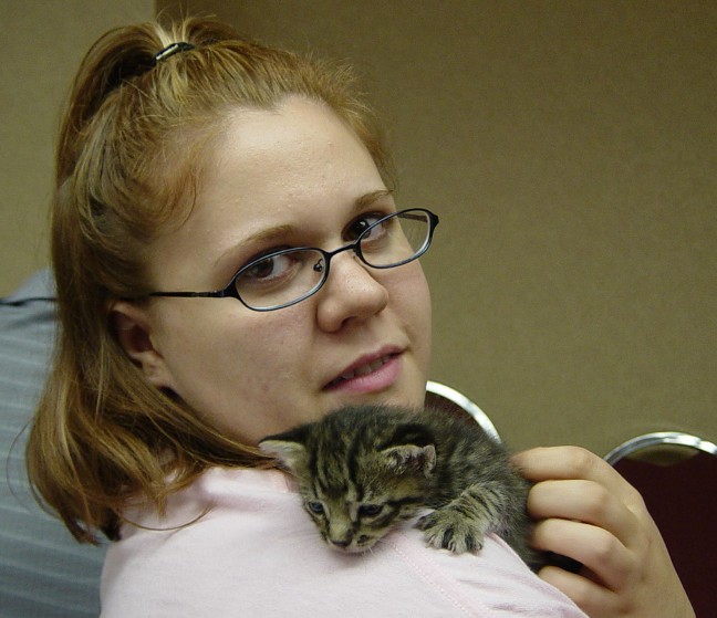 She was also working the JList booth. That's Domo-Kun on the t-shirt in the back - RARR!